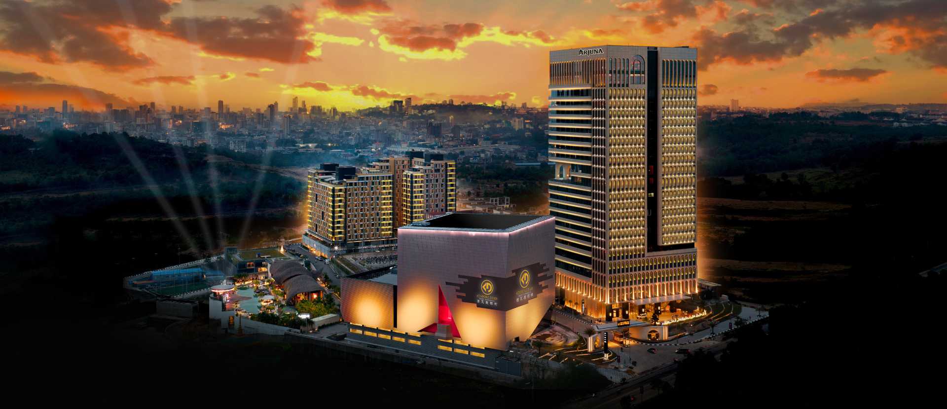 Strategically located in the city, Kompong Dewa Resort presents a diverse portfolio of hospitality and lifestyle facilities that cater to both leisure and business travelers. The integrated destination includes Arjuna Solitaire Hotel, Herloom Hotel and Residence, Bima Hotel and Convention, a curated Shopping Gallery, the exclusive Nirvana Executive Club, a Theme Park, and MOI Kompong Dewa Arena.